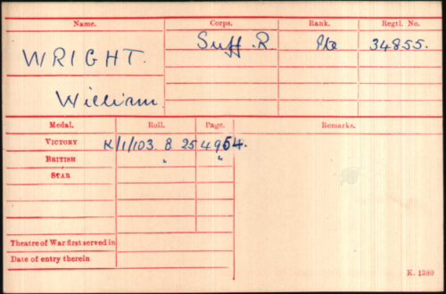William Wright was born in Stow cum Quy in 1889 (Chesterton Q4-1889 3B:462), son of Charles and Adelaide WRIGHT (née EADEN).