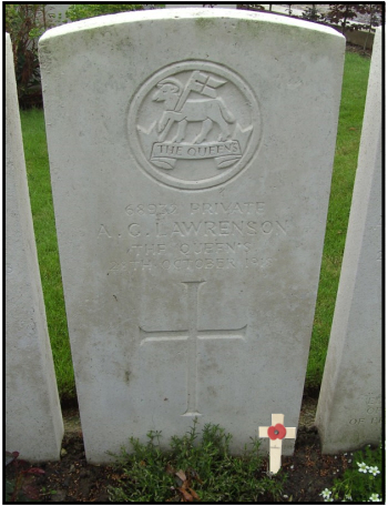 It seems more than likely that he was the H.C.Lawrenson named on the Village memorial, A.G. can easily weather to appear as H.C. and the memorial has been subject to repairs over the years. The family confirm that Albert enlisted in the Royal West Surreys.