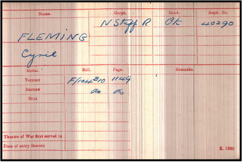 Cyril Fleming is buried in Cross Road Cemetery, Fontaine au Bois, France, grave 3:C:3