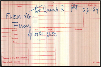 Percy Fleming was born in Six Mile Bottom on 17th August 1890 (Chesterton Q4-1890 3B:411), son of Robert and Jessie Burrows