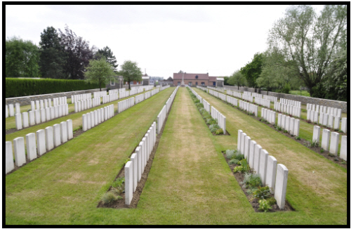 The 15th Battalion, Suffolk Regiment were originally the Suffolk Yeomanry, The Loyal Suffolk Hussars. Having served in Gallipoli, in 1917 they became the 15th Battalion and arrived in France on May 7th 1917. By the 16th October they had reached the Lille canal,but meeting strong opposition were forced to withdraw 1,000 yards to positions around Sante and Rosoir. They had 8 men killed that day. It is interesting to note that the concentration card regarding exhumation has 4 men marked with one cross and Elliott is not one of them but a Suffolk solider KIRK is. Then on the grave registration card for Rue-David Cemetery, the name Kirk is crossed out and Elliott's details written in. It is assumed that as the initial identification was purely by the single cross, in the process of moving the bodies, positive identification of Elliott was made.