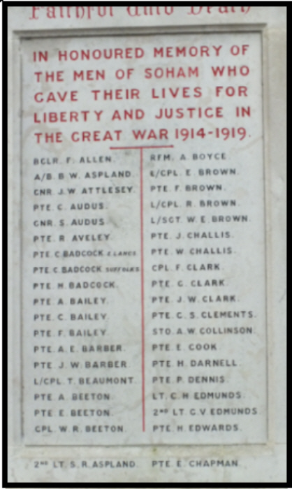 go BACK to Soham memorials page
