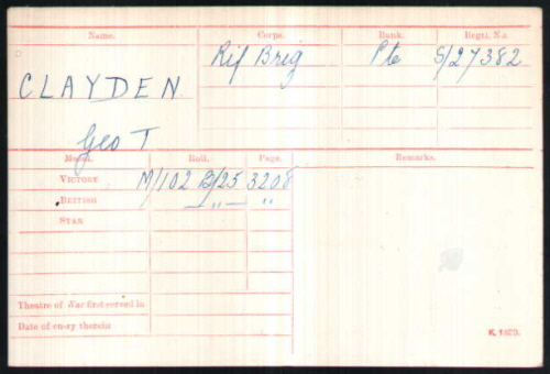 No.S/27382, Rifleman, George Thomas CLAYDEN