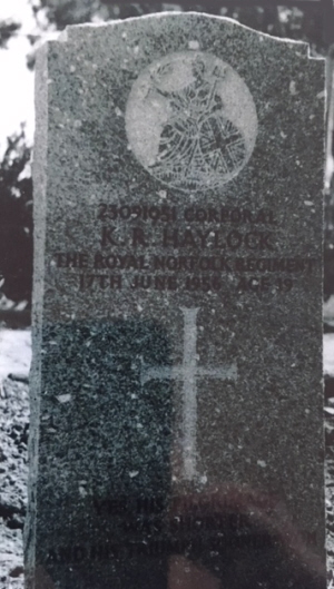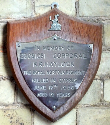 He had five sisters (Margaret, Gill, Sandra, Jac and Tanis) In 1939 his father [5-6-1912] a tractor driver, and his mother [29-11-1916] were living at Orchard House, Steeple Bumpstead (there are 3 closed records). from http://www.friendsandrelations.com we have:- 23091051 Corporal Keith Raymond Haylock Keith was born on the 9th July 1936, the eldest (and only boy) of a family of six children and grew up in the village of Steeple Bumpstead which is situated in north west Essex. After attending the village primary school he moved on to the Secondary School across the border in Haverhill, Suffolk where he became a prefect and excelled in mathematics. Local employment in those post war years was somewhat limited and so it was that Keith went to work at the village bakery both in the bakehouse and as a roundsman. Although he was not over keen on physical activities he was an avid follower of the village football team, enjoyed a good pint and had been known to participate in cricket (left hand bat). At the age of eighteen he was duly called up for compulsory National Service, selected for the Army and joined the Royal Norfolk Regiment, Knowland Platoon, November 1954 intake at Colchester. Keith was one of those who lost their lives whilst serving in Cyprus in the Paphos forest fires up in the Trodos mountaines on the 17th June 1956 - he was only nineteen years old at the time. Although over 50 years have passed since Keith's death he is still missed and lovingly remembered by his five sisters and other family members. The Elizabeth Cross and Memorial Scroll are granted to the next of kin of regular, reserve or Royal Fleet Auxiliary personnel who have died on operations, or as a result of an act of terrorism since 1 January 1948: |