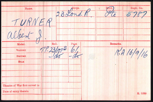 County of London Regiment he was sent to France (Southampton to Le Havre) on 15th June 1916, joining his unit in the field on 18th June and killed in action