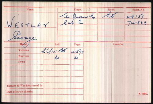 George enlisted in Colchester. His Army service record has not been found and as he died in an accident and in the Labour Corps, there is no way of saying where he died.