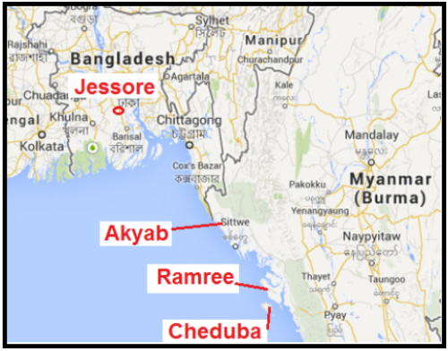 After moving to Digri in Bengal in January 1945, 358 squadron flew its first bombing mission on 13 January, when eight aircraft bombed Mandalay. This however, proved to be the only bombing operation flown, as the squadron was then allotted to Special Duties. These consisted of dropping agents and supplies into enemy occupied territory. Moved to Jessore (Bengal) in February 1945, call sign 'N'. From RAF Form 540: RAF Jessore 1st May 1945, Aircraft Liberator VI, KH312, returning from operations was ditched at approx 00:29 at map ref 1838N 9330 E. Captain signalled position and also that he had only 2 engines when off Cheroba ? Island. Light moon. Message received about 11:00 that a Catalina aircraft had put down on sea by a dinghy with five survivors. No further news of missing four. Crew of nine consisted of; Captain: F/Lt R W Robinson (51159); 2nd pilot: F/O R A Carter (RAAF 29296); Nav: F/O W H Bull (165575); Bomb Aimer: Sgt A J Sherwood (1583263); 1 W.Op: F/O L C Bartlett (1656606); 2 W.Op: Sgt E M? A Andrews (1357596); Air Gunr: Sgt T F Clarke (636459); Air Gunr:Sgt A Burling (1877098); Air Gunr: F/Sgt R Bell (15?95905) Later information was that a further two survivors were picked up. 5th May 1945 Operations: Information received from HQ 346 Wing Akyab that F/Sgt Bell and Sgts Andrews and Sherwood were at 125 General Hospital but no information as to their condition. HQ 902 Wing, Ramree notified us that after a successful drop, No.1 engine failed with No 4 running rough, subsequently failing too. Crew ordered to ditching stations off Cheduba Island owing to rapid loss of height. Aircraft hit waste (waves?) with savage impact, nose smashed in and aircraft broke up rapidly. Survivors swam ashore and were later picked up by a Catalina and ASR Launch, 902 Wing any further survivors extremely unlikely. HQ 905? Wing signalled for particulars of F/O Carter who was apparently admitted to 95 I.G.H on May 1st 1945 suffering from multiple injuries. From these miscellaneous signals it is deduced that F/Lt Robinson, F/O Bull, F/O Bartlett, Sgt Clarke and gt Burling are either killed or missing, with F/O Carter, F/Sgt Bell and Sgts Sherwood and Andrews in hospital. 6th May Confirmation received from Advanced HQ 902 Wing that Sgt A Burling had been killed in the ditching of KH-312 on 1st May and had been buried at Cheduba, also that F/O Carter had died in No 95 I.G.H. at 03:50 on May 2nd and was interred in the military cemetery Akyab on May 2nd. HQ 203 Wing notify F'O Bartlett safe and comfortable at No 95 I.G.H. Akyab. 7th May 1945: Sgt Andrews, F/Sgt Bell arrived on the squadron. Position now Safe - Sgt Andrews, Sgt Sherwood (Injured), F/Sgt Bell, F/O Bartlett (Injured) Died- F.O Carter and Sgt Burling Missing, believed killed- F/Lt Robinson, F/O Bull and Sgt Clarke In a Court of Inquiry into the accident set up by RAF Station Jessore, the Court found that “The cause of the accident was threefold : - Failure of the No 1 engine for causes unknown. - Failure of the No 4 engine apparently from bearing failure. - The fact that the crew were not aware of the night landing facilities at Kyan and the fact that K type dinghies were not carried on the aircraft. This was considered to be responsible for one if not three deaths. No blame can be attributed to any person for the engines failures.” Akyab War Cemetery was closed as permanent maintenance was no longer possible, and Albert was exhumed and re-interred in Taukkyan on 3rd June 1952 |