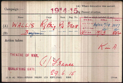 Benjamin WALLIS was born in Stetchworth in 1892 (Newmarket Q2-1892 3b:526) to to George and Sophia WALLIS (née ALLEN)