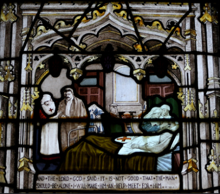 window two, light two top (Red Cross hospital) "AND THE LORD GOD SAID IT IS NOT GOOD THAT THE MAN SHOULD BE ALONE I WILL MAKE HIM AN HELP MEET FOR HIM"