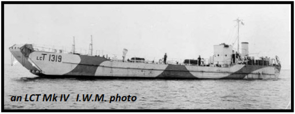 He was commissioned on 23rd August 1940. HMS Brontosaurus was a "Stone frigate", actually Castle Toward, Dunoon, Argyll, which was the No 2 Combined Training Centre where Officers and men, from all three services, were trained to operate various major types of landing ships and craft for the amphibious operations that took place from late 1943 onwards. Valentine was one of the 12 Naval personnel killed when Landing Craft Tank 875 was sunk off the beaches at Arromanche by German motor torpedo boats. LCT 875, a Mark IV, was built at Stockton on Tees and commissioned on 17th April 1943. It could carry 9 Sherman or 6 Churchill tanks |