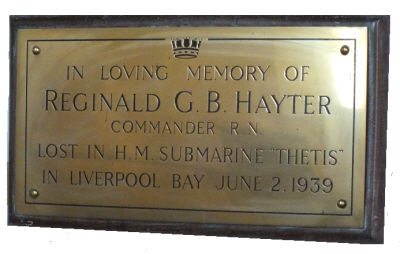 In the church there is also a plaque commemorating a man lost before the war started Commander Reginald Hayter, Royal Navy