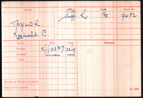 Reginald Charles Taylor was born in West Wratting (Linton Q4-1897 3B:493), son of Henry and Ada TAYLOR (née STUBBINGS).