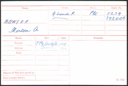 No.392006, Lance Corporal Morton Alfred BOWYER