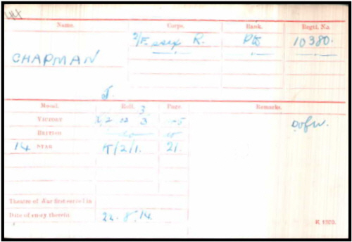 He enlisted in Colchester but must have been a regular as his medal index card (says he died of wounds) shows he was in France/Flanders by 22nd August 1914, but he has no clasp to the 1914 Star.