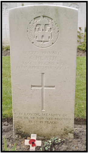 The 2nd Essex on 18th April 1918, according to the war diary, were in the support area near BELLERIVE. Hostile attack. Barrage commenced at 1:00 am. Actual attack materialised at 3 am. Not heavy losses. 1st Bn Kings Own Regt attacked the village of RIEZ-du-VINAGE at 9 pm and the battalion relieved them on the east side of village. Casualties..Capt L.M.WINN wounded. CWGC records have 12 men of the battalion killed on 18thApril 1918