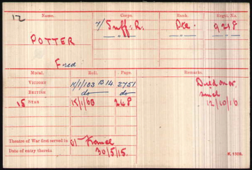 Fred Edward Potter was born Weston Colville (Linton Q2-1895 3B:511), son of John and Lydia POTTER (née LINSDELL).