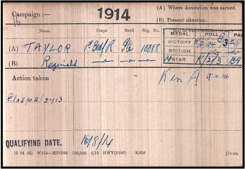 Reginald Taylor was born Weston Colville (Linton Q2-1896 3B:508), son of James Thomas and Ellen TAYLOR (née HOWE).