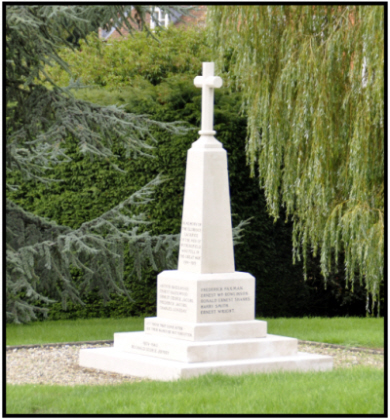 On the Green, Withersfield, a Latin cross on an obelisk atop a square plinth on a three stepped base. All apparently of Portland stone. Built by E.C.Green, the memorial was unveiled by Lieutenant H.Lake M.C. on the 12th August 1921 attended by the Rev. W.G.Hodges. |