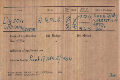 William George Dyson was born in Wandsworth, London in 1889, son of George and Fanny Mary DYSON (née WADE).