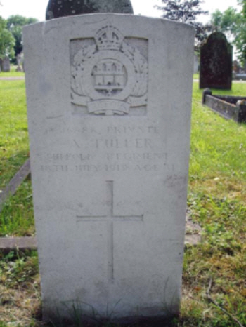 Initially in the Cambs Yeomanry Battalion, Suffolk Regiment he served in the 13th Reserve battalion before being posted via Folkestone to the 11th Battalion in France, on 12th February 1916. He suffered a gun shot wound to the left knee on 4th July 1916 near Albert, France,taken to No. 103 Field Ambulance and then evacuated to England on 9th July 1916 on HMHS 'St David'. On 19th January 1917 he was discharged as being no longer physically fit for war service, awarded Silver War Badge N0.115817. He had lost 2 stone in weight. Whilst at Leicester hospital for treatment on his wounds he had developed a cough which eventually was diagnosed as phthisis (T.B.) His intended address on discharge was Parsonage Lane, Burwell. His history is complicated by seeming discrepancies in his Army documents i.e. enlistment in March on 24th November 1914 (28 years 3 months) and another sheet it was at March on October 15th (29 yrs 3 mths). It is possible the earlier date was joining the militia. As to age, that was always dubious. He was recorded as 30 years 5 months old on discharge. The day he was brought in wounded at Albert, the 11th Suffolks were relieved at 2 am by the 69th Brigade and were marching back to Becourt, to a camp in Long Valley a mile west of Albert. They had just been through a terrible ordeal. The 11th Suffolks, in the battle of Albert in 1916 suffered the highest battalion casualties in the division, 691 of all ranks. Bear in mind that a battalion was usually just over 1,000 men. His death certificate, which gives him as William Alfred FULLER, a general labourer, an Army pensioner ex 11th Suffolks # 16888 gives date of death as 18th July 1917, NOT as on his headstone (1919). 1917 concurs with the entry in the Burwell Burial register. |