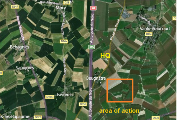 The question is, was he with the Suffolks or the Warwicks at the time of his death ?. It does appear that he was mobilised in July 1916 as 2nd Lieut., in Suffolk 3rd/5th Battalion, promoted to Lieutenant and attached to the 15th Bn, Royal Warwickshire Regiment. That battalion, in August 1918 were in action just south east of Mory:-