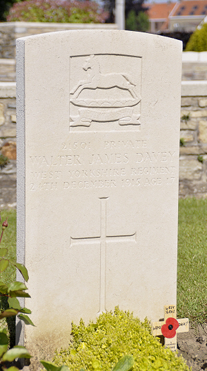 12th (Service) Battalion of the West Yorkshire Regiment was formed at York on 16 September 1914 as part of Kitchener's 3rd Army and came under the 63rd Brigade, 21st Division. They landed at Le Havre in September 1915 and on 16 November 1915 were transferred to 9th Brigade, 3rd Division. They were just south west of Ypres near St Eloi when Walter was killed, he and only one other were killed in a whole week over Christmas.
