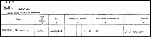 No.Z/5144, Able Seaman, Herbert Alfred BAREHAM