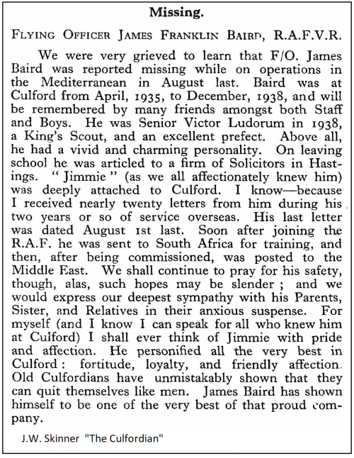James Franklin BAIRD was born in Hastings on 1st April 1921 (Hastings Q2-1921 2B:39), son of Herbert Franklin and Eugenie Virginia BAIRD (née