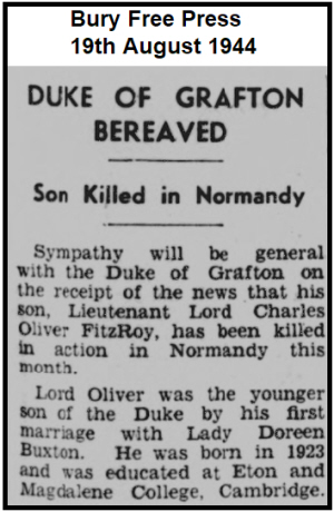 Charles Oliver Edward Fitzroy was born on 13th July 1923 at Euston Hall (Thetford Q3-1923 4B:528), 2nd son of Lord Charles Alfred Euston FITZROY J.P., D.L.,