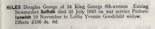 Douglas George MILES was born on 6th July 1920 (New Forest Q3-1920 2B:1420), son of ? and Lottie Yvonne MILES (née MARSH).