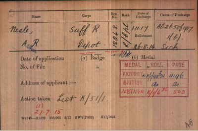 No. 12248, Lance Corporal, Arthur Robert NEALE
