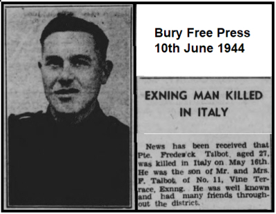 Born on 19th March, 1917, the only the son of Frederick and Ethel TALBOT (nee BOWMAN) of Exning. He had three sisters, Mabel, Elsie and Isabel and they lived