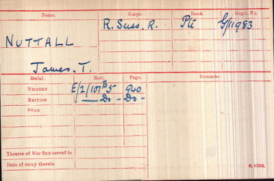 James Thomas Nuttall was born in Bacup in 1891(Haslingden Q1-1891 8E:92), son of Joseph and Sarah Ann NUTTALL (nee AIREY).