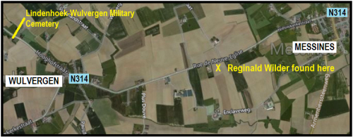 His entry in De Ruvigny's Roll of Honour reads : WILDER, REGINALD CONNOR PHILLIPS, 2nd.Lieut.,2nd Battn.(12th Foot) The Suffolk Regt., 2nd s. of the Rev.W.B.C.Wilder; served with the Expeditionary Force in France and Flanders,and was killed in action there 19.Nov.1914. It was reported that he was shot by a sniper. He was found as shown below, buried in Lindenhoek-Wulvergen Military Cemetery but his grave was later lost, hence he has a memorial cross in the cemetery (1919) but is named on the Menin Gate. |
