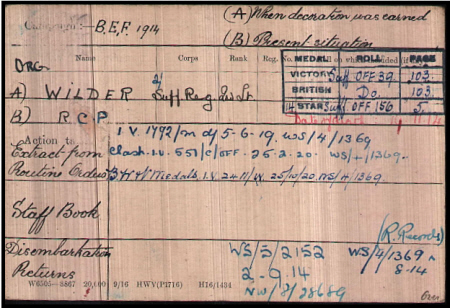 Reginald Connor Phillips Wilder was born in 1896 in Great Bradley (Risbridge Q1-1895 4A:733), baptised in Great Bradley on 24th March 1896, son of Reverend