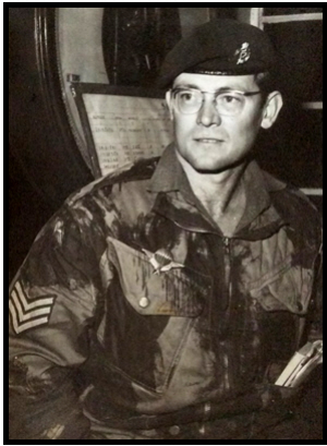 In 1952 he joined the newly formed Boys Squadron, Royal Armoured Corps at Bovington Camp, Dorset. Entry age was 15 and trained to take their place as crewmen in the Royal Armoured Corps Regiment once they reached 18. Training was in wireless, driving and vehicle maintenance and gunnery. At the completion of his Boys service he transferred to the King's Dragoon Guards, which became the 1st, The Queen's Dragoon Guards in 1959. Soon after joining his regiment he was posted overseas and 1956 was in Singapore for Christmas. He was two years in the far East, being in Seremban in Malaysia in 1958 and then posted with the Dragoon Guards to Aden. This was where he met Sheila Greenhow, whose father was stationed there in the Royal Air Force. They married in Aden on October 1959, were soon back in UK before moving again to Germany. He became a member of the Parachute Squadron, completing the requisite number of jumps each year. He was given the chance to do freefall and spent September and October 1965 at a French training camp at Pau, which earned him the award of the silver French wings he wore over the right breast pocket. Returning to UK, to married quarters at Tidworth, Hants, now with three sons, he completed two tour of duty in Northern Ireland and was deployed for a third tour in 1917. |