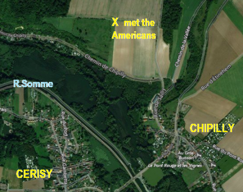 The plan was to take CHIPILLY RIDGE, aided by 3 tanks. At 4:15 pm they started and directly they left the eastern edge of Mallard Wood they were met with extremely heavy machine gun fire from CHIPILLY RIDGE and the SW corner of CELESTINE WOOD, suffered very heavy casualties and could make no progress. Machine guns were pushed up on their right flank to help them. Then the 10th Battalion arrived and with their CO commenced working towards CHIPPILY (where 4 hostile guns had been taken out by a tank) and then northwards. The 6th were then withdrawn to K.33.b.6.0. where they met the Americans.Lieut IDRIS, who was CO of Battalion Coy., assumed command of the Americans and with the remnants of his company worked NE through CELESTINE WOOD, then due E for the 85 contour on CHIPILLY RIDGE. He reached this objective just as the 10th Londons swept up the ridge from the south. Lt. Idris fired his success signal and supervised consolidation. Seeing there were enough troops to hold the ridge he then handed over to the Americans and retired with his very tired men to Battalion HQ at K.35.d.8.2., arriving at 5 am on 10th. The operation on the 8th and 9th had cost the London Regiment 12 officers and 308 other ranks across the 6th, 7th, 8th and 10th battalions involved. |