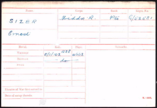 Ernest Edward SIZER was born on 26th September 1885 at 5 Pound Row, Haverhill, (Risbridge Q4-1885 4A:604 ), baptised at St.Mary's Haverhill