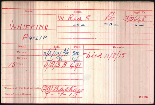 Philip WHIFFING was born in Haverhill (Risbridge Q4-1890 4A:596), the son of William and Emma WHIFFING (née GOWERS).