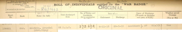 No. 184421, Gunner, Arundel Edward Otway GOODWIN