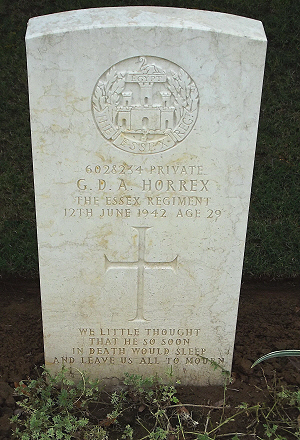 George D.A. Horrex was born in 1913 (Stow Q2-1913 4A:1910), the son of Archibald Thomas and Grace Sarah HORREX (née HARPER).