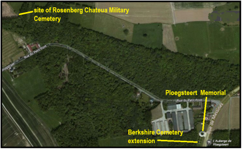 He was killed in action near Ploegsteert on 4th October and was buried initially in Rosenberg Chateau Cemetery (at the far end of the woods behind the Ploegsteert Memorial) and these graves were all moved in 1930 to the Berks Cemetery extension, on the opposite side of the road to the Ploegsteert memorial. His was the only death in the battalion that day.