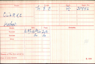 Herbert Clarke was born in Isleham (Newmarket Q1-1881 3B:550) baptised in Isleham on 15th April 1881, the 6th son of John and Naomi