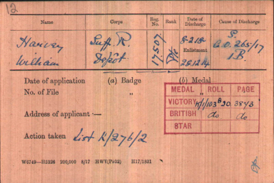 Attested in Suffolk Regiment on 29th December 1914 in Newmarket and examined in Cambridge. The 11th Battalion was often referred to as the Cambridge Battalion. Recruiting in the Fenland area had been so heavy that the Suffolk's depot in Bury St.Edmunds was struggling to cope and a camp was set up in Cambridge to cater for men from that area He gave his age as 30 years 5 months, a farm labourer from Sun Street, Isleham, who had previously served for 6 years with the 3rd battalion, Suffolk Regiment being discharged early in 1911. He gave his marriage particulars (above) and also recorded two children, John Richard 27-9-1907 and Ada 8-3-1912 both born in Wisbech. He was 5' 8.5" (174 cm) tall, chest 37" to 39.5"(94 to 100.3 cm). Having just the War and Victory medals shows he was not abroad before 1st January 1916, in fact he arrived in France 7th January 1916 He was first wounded on 1st July 1916 (the first day of the Battle of the Somme). Then he had a gunshot wound to the head on 20th March 1917, this may well have been when the battalion were in the line south of Roclincourt, carrying supplies, raiding and cutting wire ready for the assault on Arras. Then on 26th August 1917 he received gunshot wounds to the eye, nose and back, and is recorded as dangerously ill. His last and more severe, wounding probably came when they were engaged in the successful attack on Malakhoff Farm in front of Hargicourt. On 26th August 1917 he was first attended to at 103 Field Ambulance, passed on to 55 CCS (at Tincourt) and then to 5 General Hospital (Rouen) on 28th August before evacuation to UK on 21st September. Posted to depot (Bury St. Edmunds) on 22nd September 1917, he was discharged as no longer physically fit for service on 8th February 1918. He reported that he had suffered from pleurisy several years earlier but had fully recovered. Medical reports state that fatigue and the effects of his wounds had lowered his resistance and that he was 100% disabled. More often than not a casualty who died in UK was sent "home" for burial. It is not clear who arranged this and paid for it. One brother buried in Islesham and one in Wisbech is explained by his marriage in Wisbech, his subsequent residence there and his children being born in Wisbech. He does not appear on the Wisbech war memorial but on the Walsoken memorial in the churchyard of All Saints. His death registration is Wisbech Q4-1818 3B:1164 and gives him as an Army pensioner, suffering from gun shot wound and tuberculosis of the lung. The informant was his widow Elizabeth of 28 George Street, Walsoken, who married John H NEWMAN in 1920. |