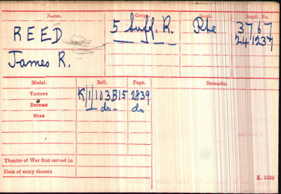 James Robert Reed was born in Isleham on 16th February 1893 (Newmarket Q1-1893 3B:515), baptised in Isleham on 26th March 1893,