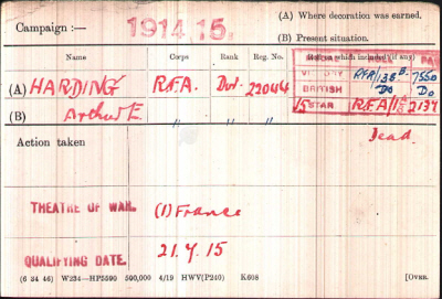 Arthur Harding was born in Kennett (Newmarket Q1-1890 3B:529), baptised in St Nicholas, Kennett on 9th March 1890, son of Charles and
