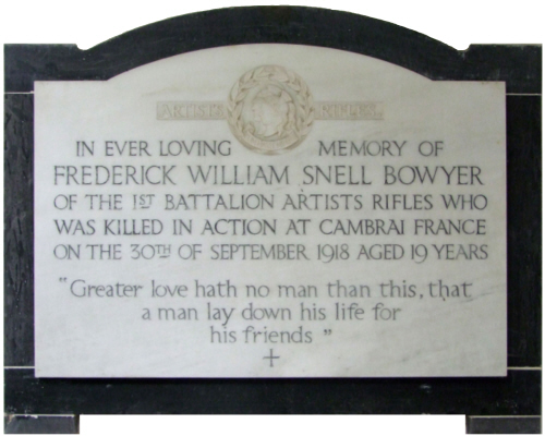 Frederic William Snell Bowyer was born in Kirtling (Newmarket Q1-1899 3B:503), baptised on 2nd April 1899 in Kirtling, son of Frank and Rose Alice BOWYER