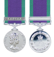 James enlisted in Ipswich on May 15th 1962 having previously worked as a hairdresser's assistant. He was killed on June 4, 1964 after being hit by a grenade in Radfan, a region in the Yemen. The medal shown is the General Service Medal with the clasp for Radfan |