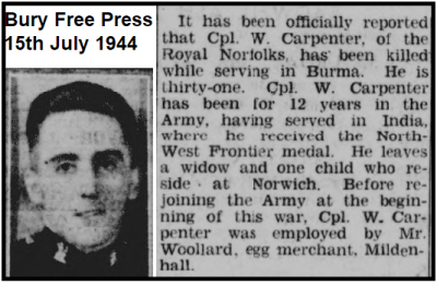 William Thomas James N. Carpenter was born in 1913 [Mildenhall Q1-1913 4A:1823], the son of William and Alice CARPENTER (née NICHOLAS),