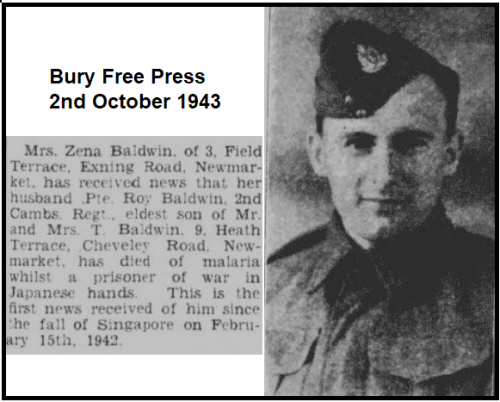 Born on 16th June 1912 (registered as Thomas R BALDWIN) in Newmarket [Newmarket 3b:859] to Thomas and Beatrice BALDWIN (née LOWMAN).